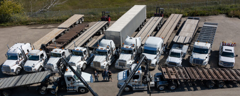 Wide variety of trailers including Super B, Step Deck, Curtain side, Highboy Trailers up to 53′, and Expandable Truss Trailers to service 100’+ Trusses